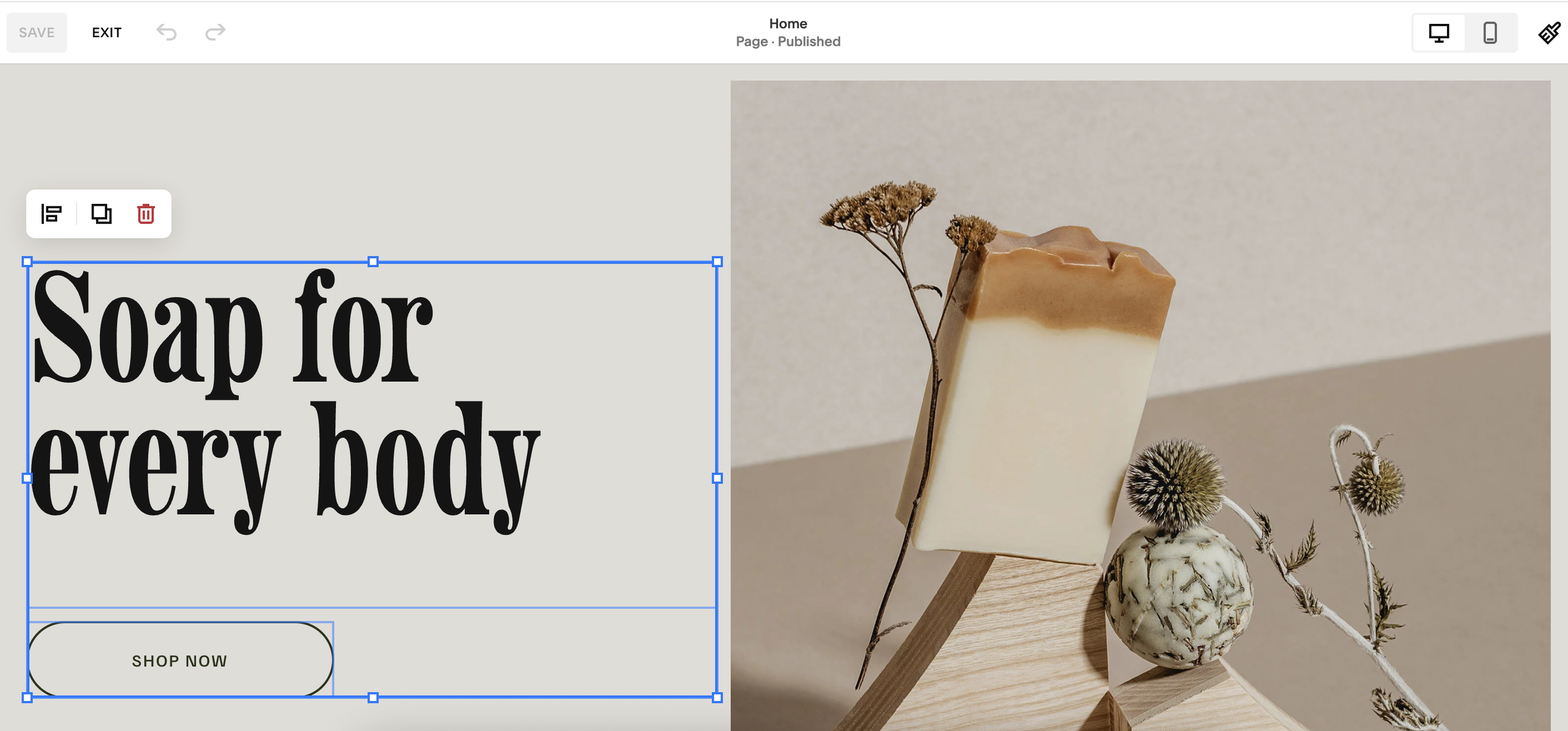 Open the page you’re working on and click Edit in the top-left corner of the section.