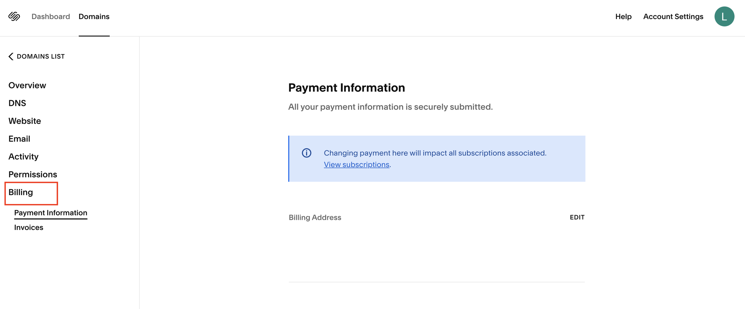 How to Change Domain Billing Info in Squarespace