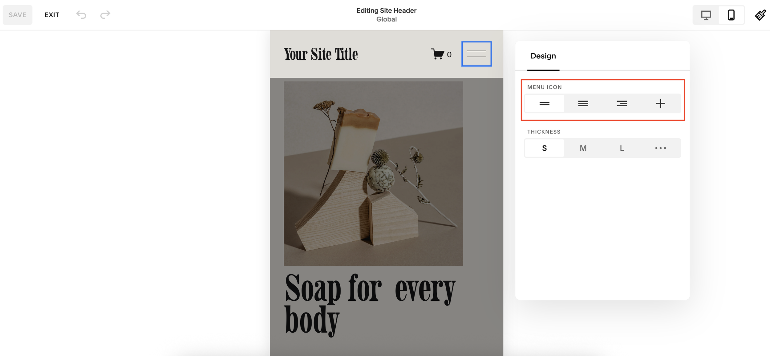Once you’ve chosen your style and thickness, simply save your edits. Your new menu icon will now appear in mobile view.