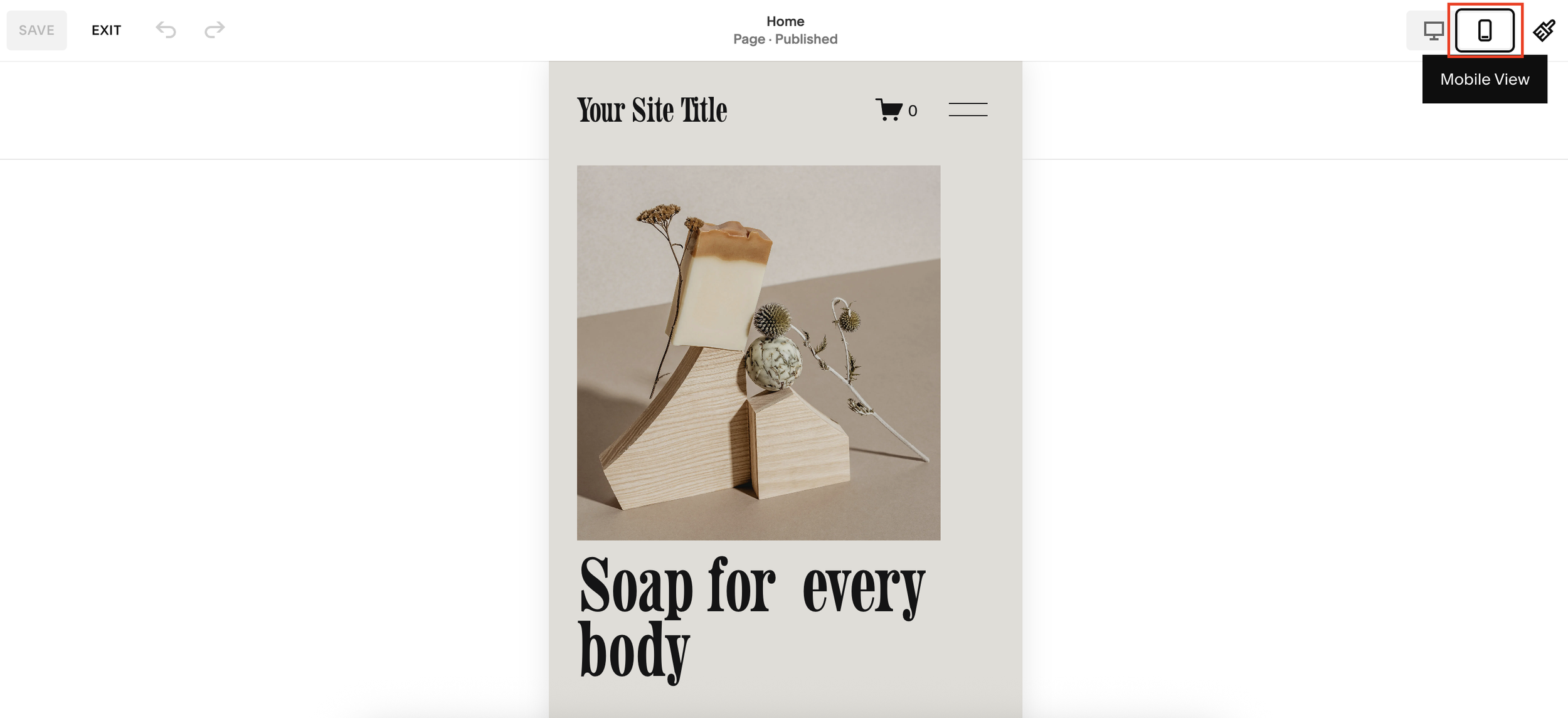 In your Squarespace editor, click the mobile view icon. You’ll now see the default hamburger menu, typically two lines stacked.